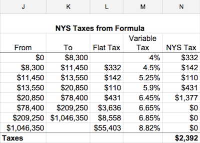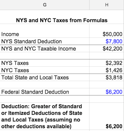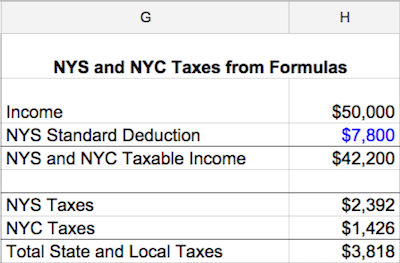 Using those formulas, Sam comes up with a total of $3,818 in total tax due to New York State and City, which also is the itemized deduction she can take.