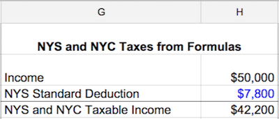 That gives her a taxable income of $42,200 in cell H4.