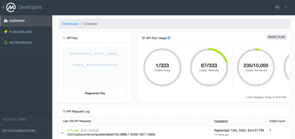 2. Get an API key: Go to Settings > Products > Crypto API, or just click here.