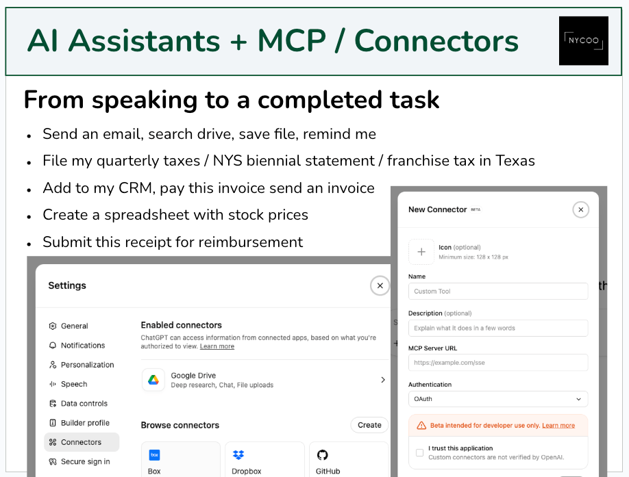 This document and the new Connectors features released by OpenAI are just more evidence of the future we’re moving towards across the industry where AI Assistants, built by OpenAI / ChatGPT and others, will plug into a variety of Connectors / MCP Servers to let you do so many things. You can still do the work you want to, better and faster probably with the help of AI, but AI will do the rest.